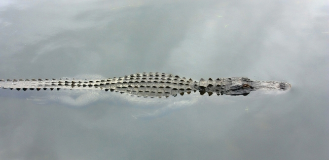 During our creek paddles we would canoe over more than one basking alligator. We started calling them "speed bumps". Thankfully, they took no notice of us but it was a little unnerving to look right beside the canoe and see a 'gator.